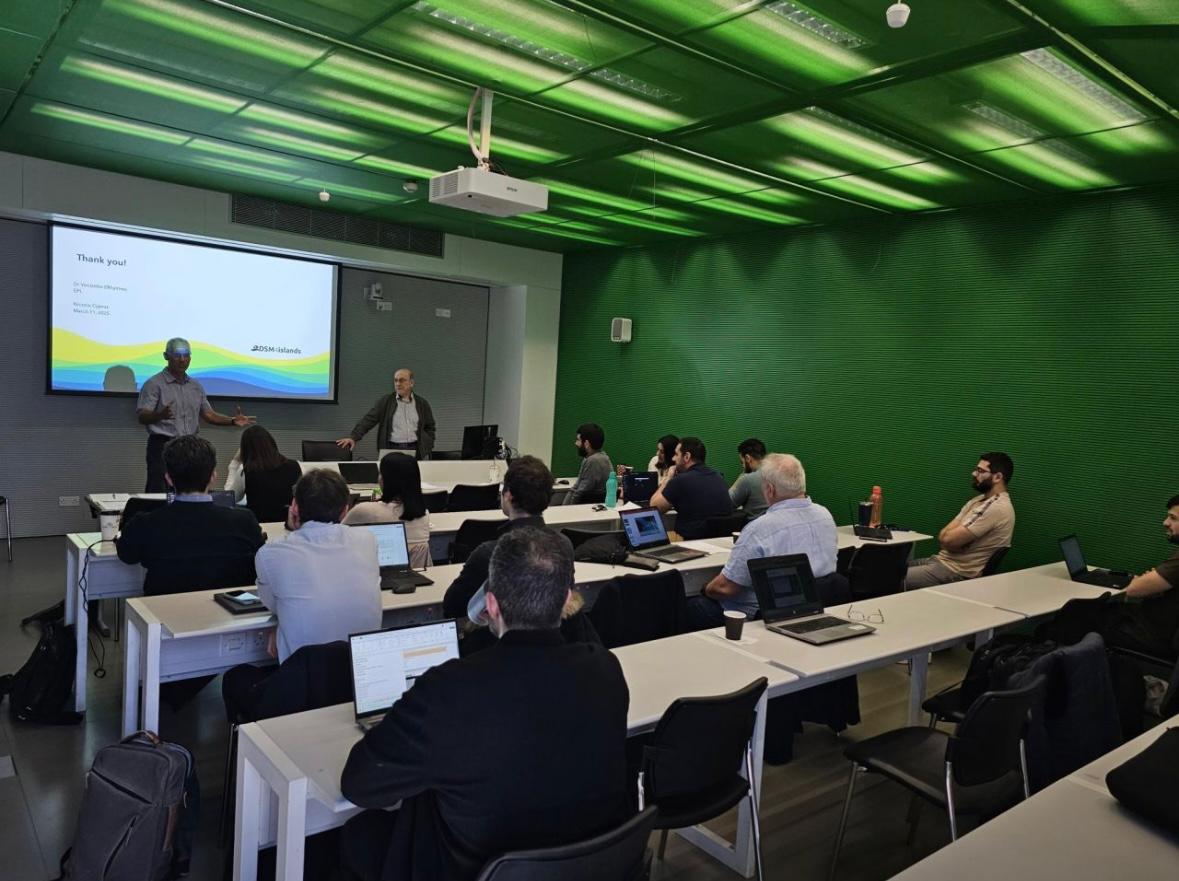 Following this, the consortium convened at the University of Cyprus for an intensive three-day meeting. The first day featured opening remarks from Dr. Venizelos Efthymiou (EPL), Prof. George Georghiou (UCY), and Dr. Thomas Ackermann (ENA), along with partner activity presentations, relevant case studies, and techno-economic analysis of the project. The day was rounded out by a productive open discussion among the partner representatives, with closing remarks by Dr. Efthymiou setting the scene for Day 2 .